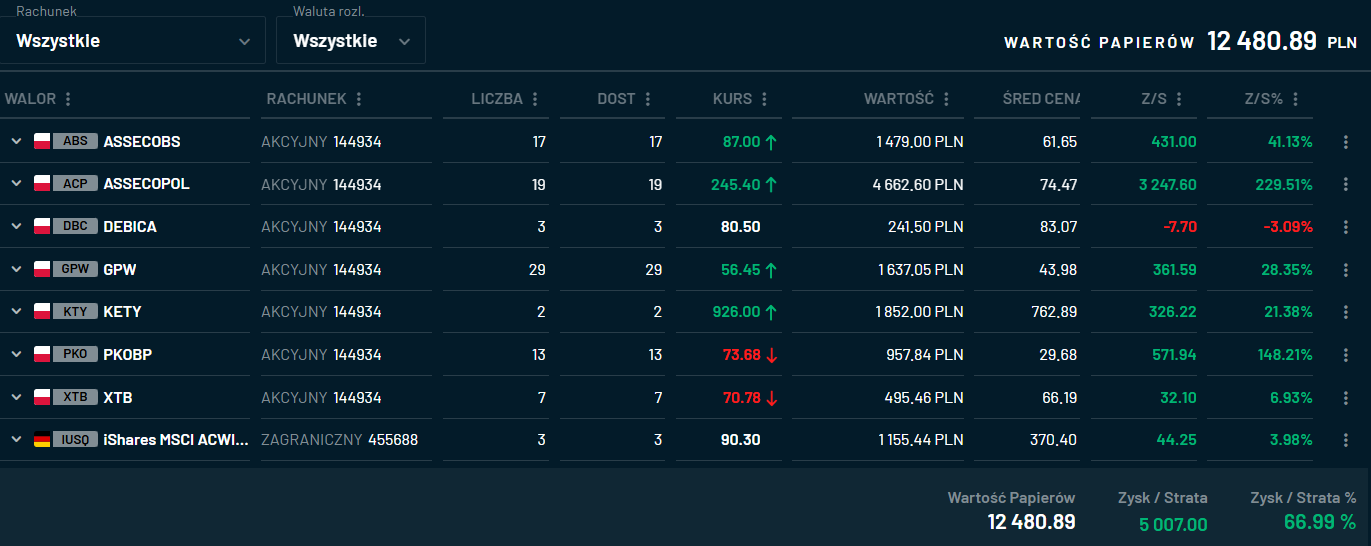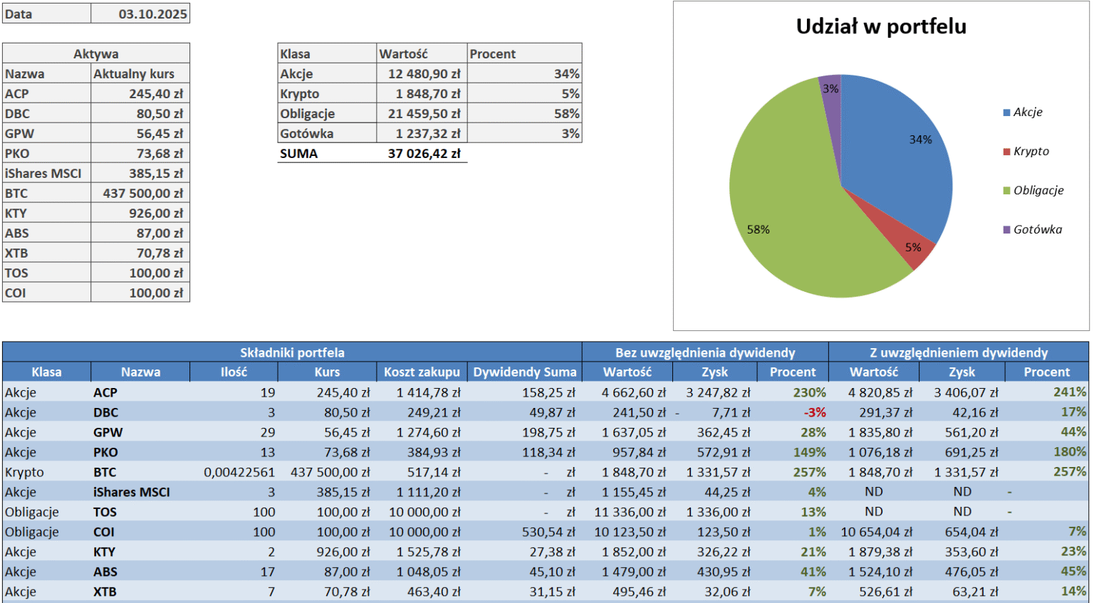 Do budowy i zarządzania portfelem korzystam z usług DM BOŚ (akcje) i ZONDA (krypto)
